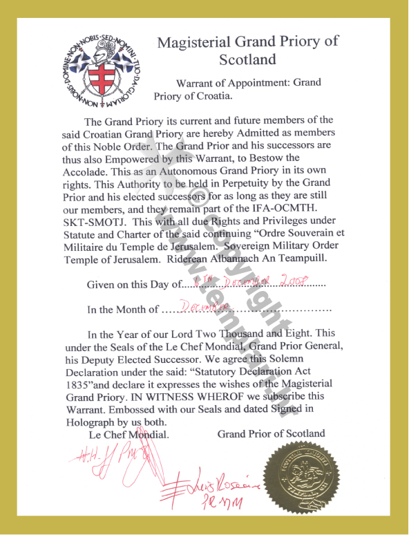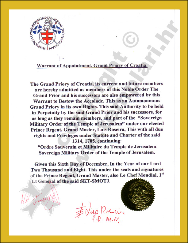Odluka o imenovanju Grand Prior Hrvatske - SMOTJ